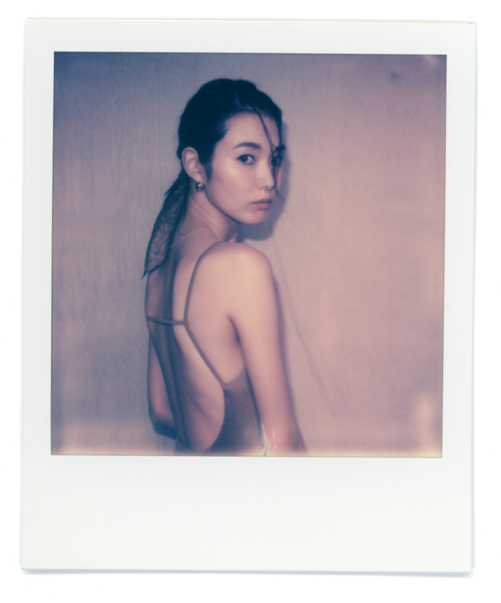 大きく開いた背中に華奢な1本のバックラインが魅力。