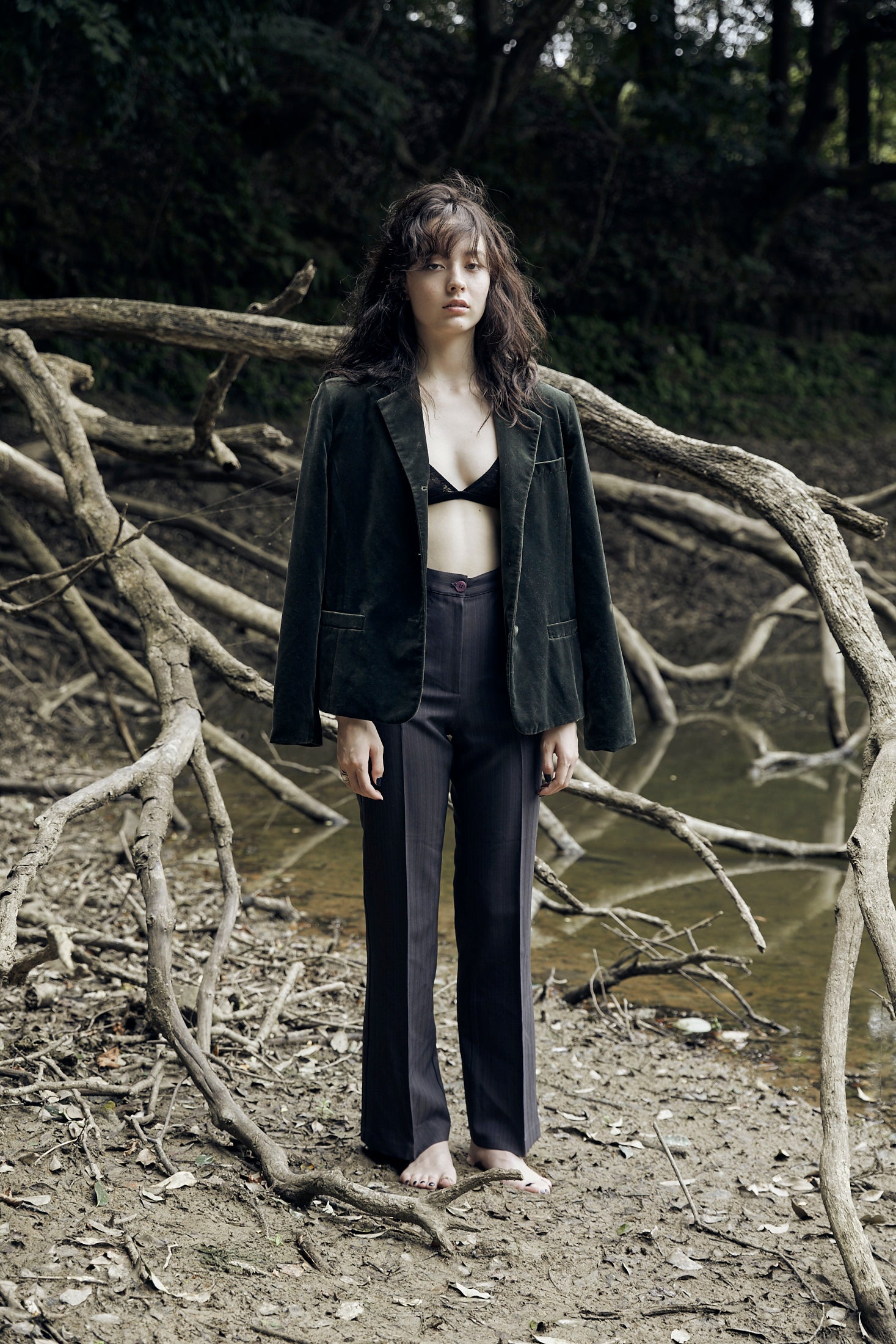 華奢な紐とレースの、トライアングルブラトップと