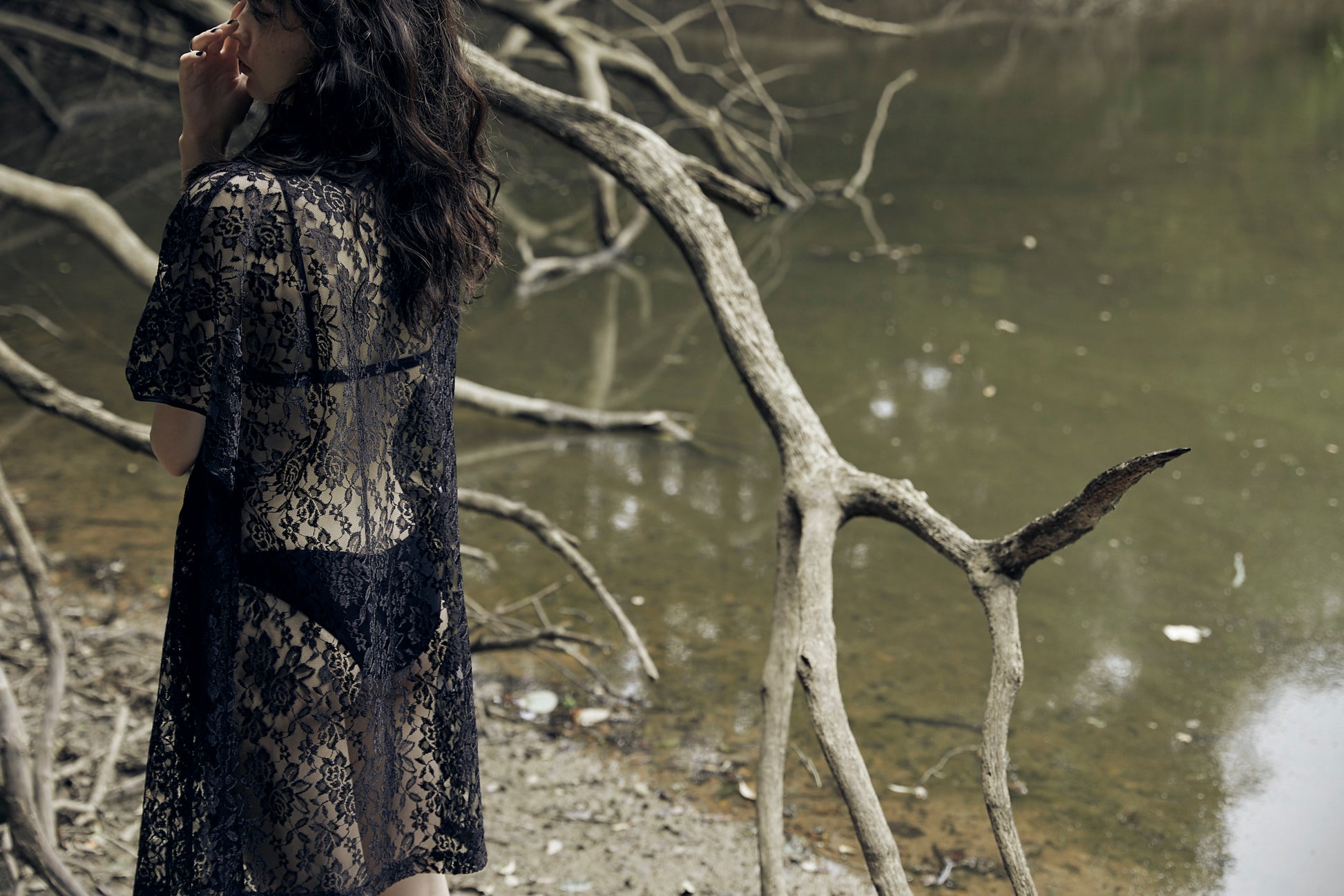 上下ブラック、トップはレースです。