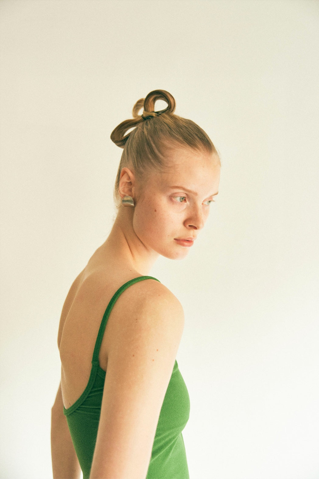 Our Signature Swim Tank Top. A timeless favorite. The double-layered front provides extra support, while the open-back design adds a touch of effortless elegance. Pairs perfectly with high-waist bottoms for a sleek, one-piece look, or wear it as a stylish tank top beyond the beach.