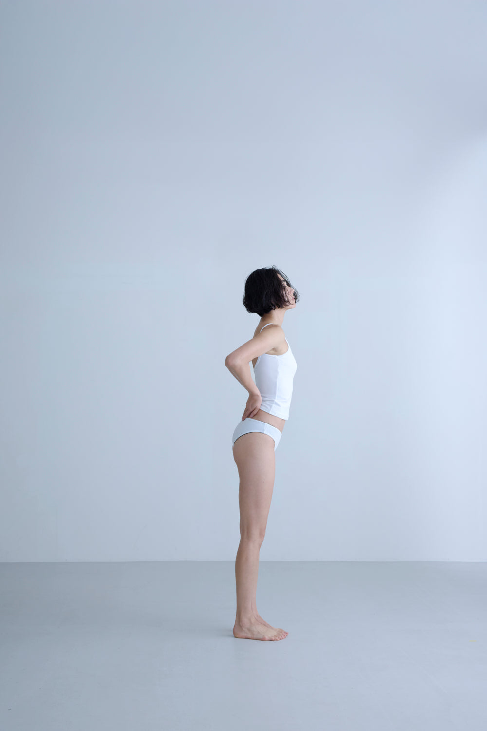 eit swimのシグネチャーとも言える大好評のスイムタンクトップをアップデート。今季は着丈を10cm長くし、お腹までカバー。フロントが2枚仕立てになりホールド力がさらに増しています。しっかりフィットしながら背中の開きでヘルシーに。