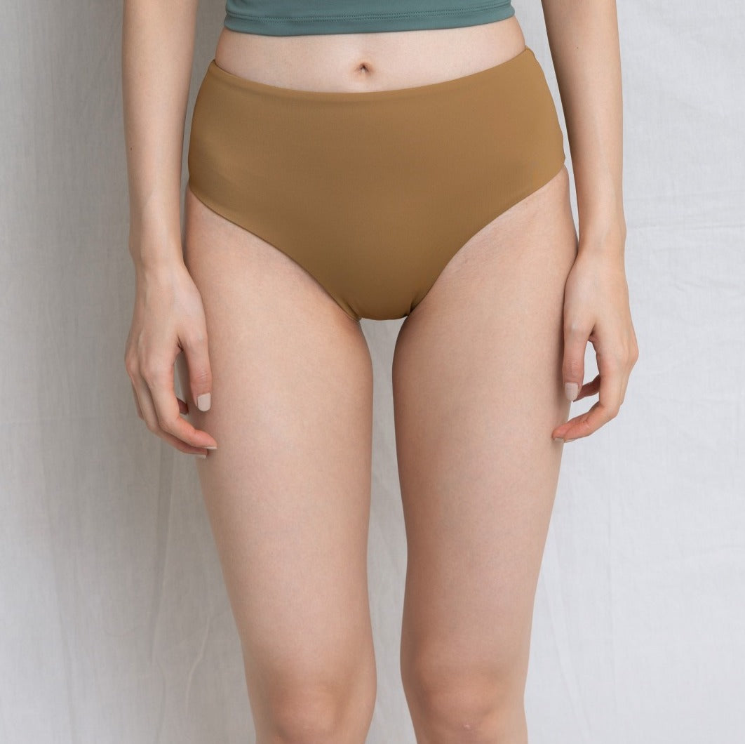 しっかりと身体にフィットする、ミドルウエストのビキニボトム。