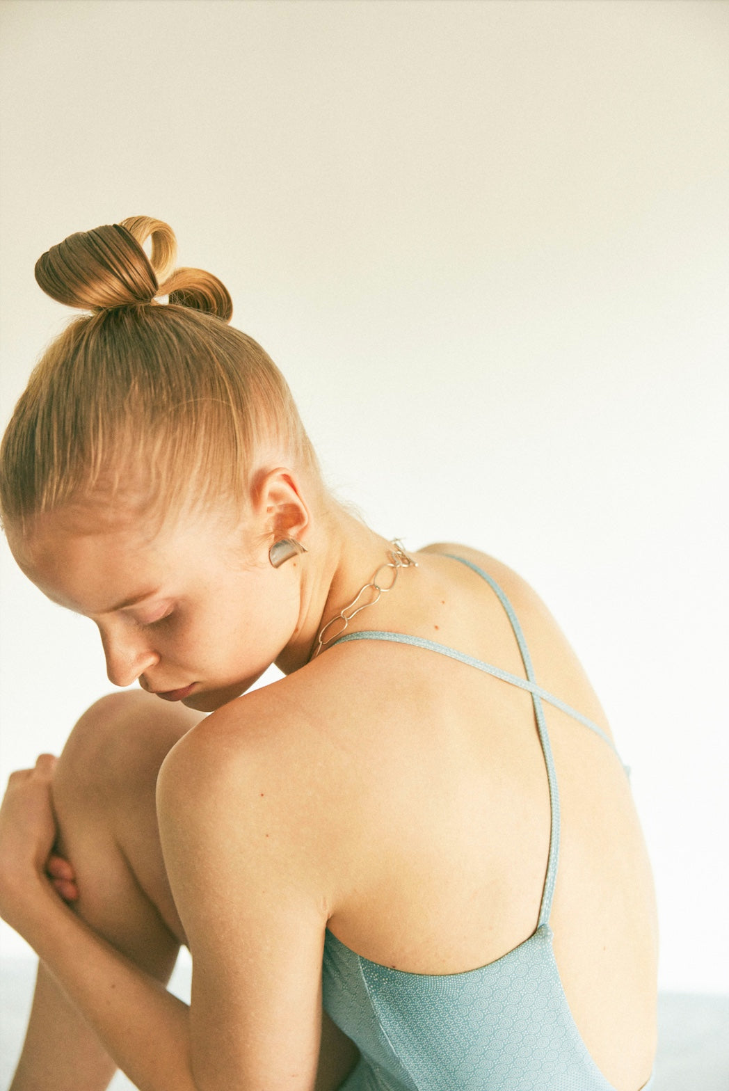 サイドのいびつなホールがアクセントのワンピース。背中はクロスでしっかりフィット。体を美しく見せる計算された開き具合もポイント。ヒップをカバーしたい場合にはMサイズで腰のサイドを下げてご着用ください。街ではパンツと合わせてサイドのホールを覗かせるのもあり。